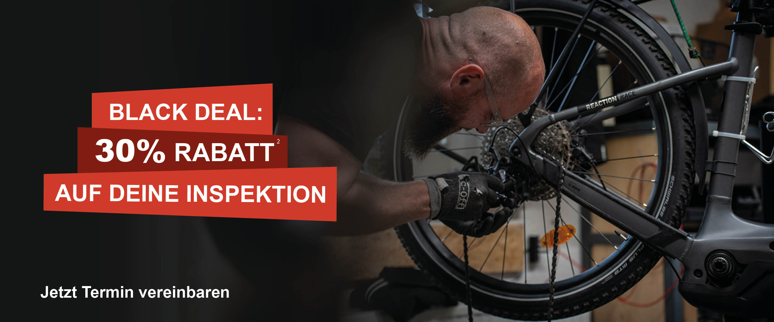 2 - 30% Rabatt gelten bei Buchung des kleinen Inspektionspaketes im Aktionszeitraum (Buchung muss in einer unserer Fahrradwerkstätten Zella- Mehlis, Hildburghausen oder online erfolgen bis 30.11.2025). Die Durchführung muss der kleinen Inspektion muss bis zum 28.02.2026 stattfinden. Tippfehler & Irrtümer vorbehalten.