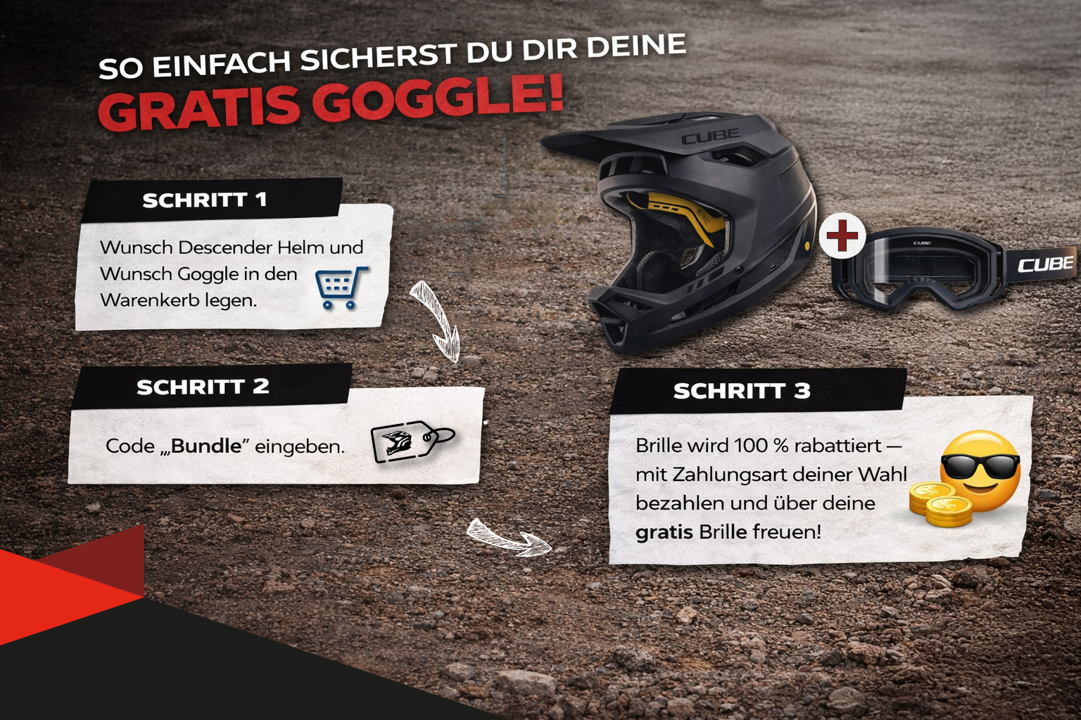 Gratis Goggle zu den neuen Descender Helmen von Cube